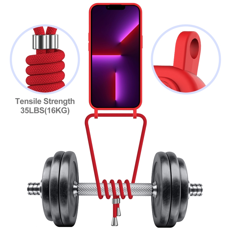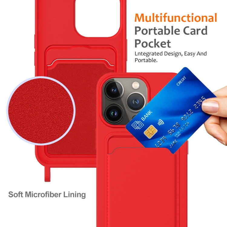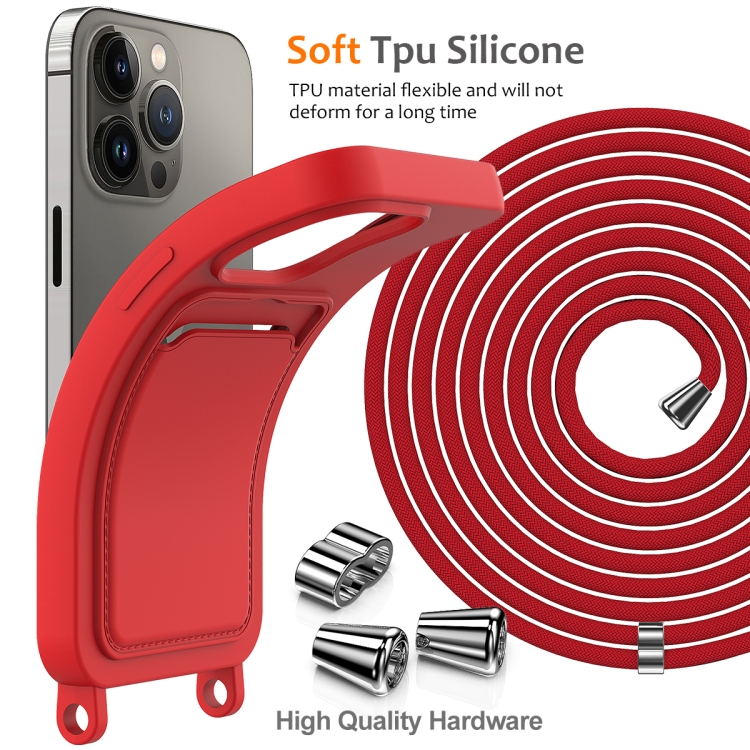 Funda para Teléfono iPhone 15 Pro Max Bolsa para Tarjeta Silicona Líquida con Cordón (Rojo)