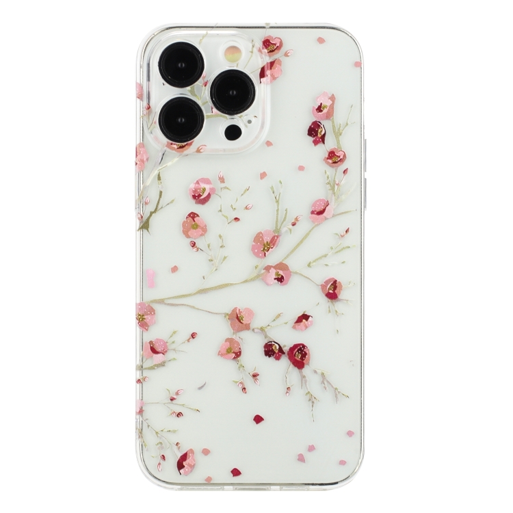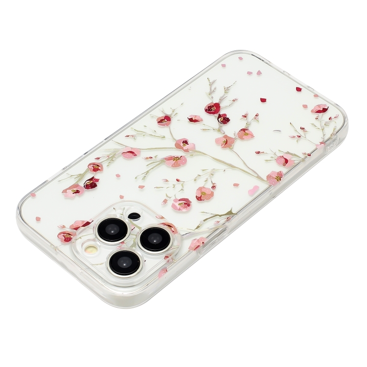 Caja de teléfono TPU para iPhone 15 Pro Max con patrón de pintura colorida (Flores Rojas)