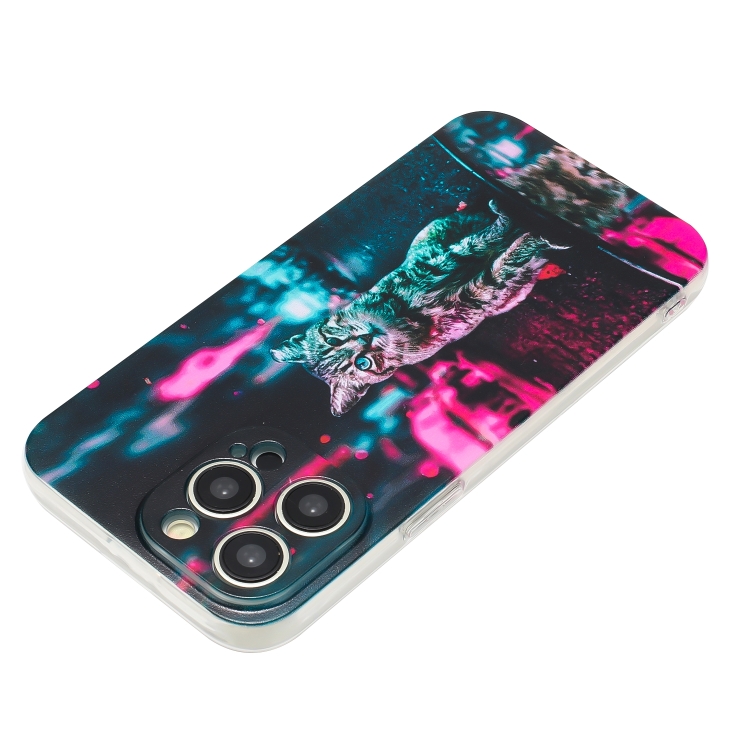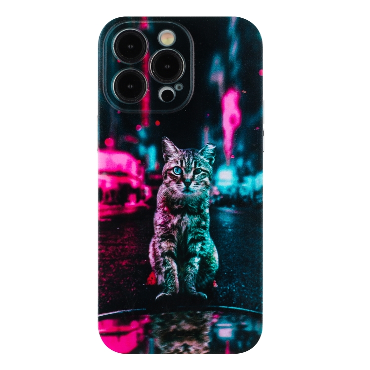 Funda para iPhone 15 Pro Max TPU con Patrón de Pintura Colorida Gato Semáforo