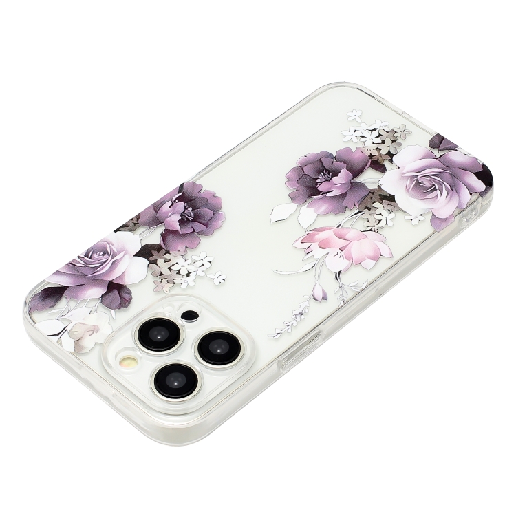 Caja de teléfono TPU para iPhone 15 Pro Max con patrón de pintura colorida (Peonía)