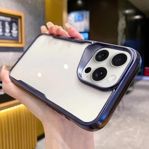 Caja de teléfono híbrida para iPhone 15 Pro Max con PC y marco de TPU galvanizado (Azul)