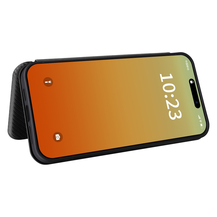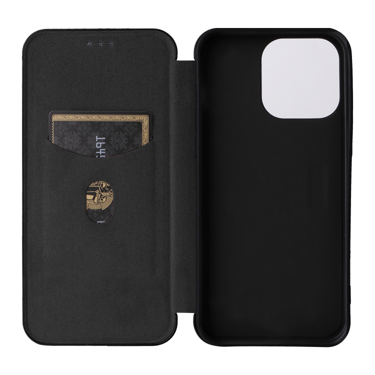 Funda de Cuero para Teléfono iPhone 15 Pro Max Carbon Fiber Texture Flip (Negro)