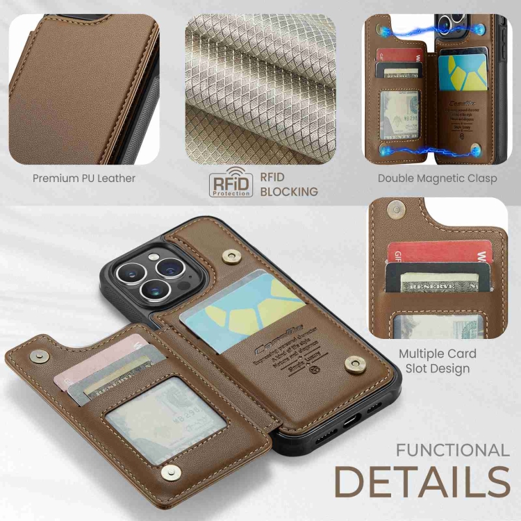 Estuche para Teléfono Caseme C22 para iPhone 15 Pro Max Antirrobo con Ranuras para Tarjetas Rfid (Marrón)
