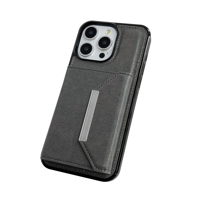 Funda para Teléfono iPhone 15 Pro Max Hebilla de Metal Ranuras para Tarjetas Bolsa (Gris)