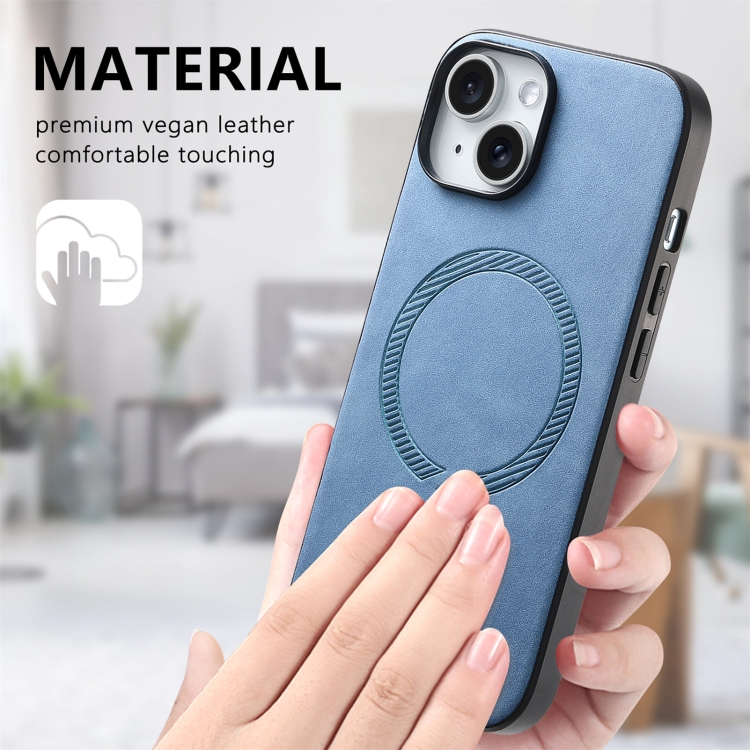 Funda para Teléfono iPhone 15 Pro Max Retro Magsafe PU con Contraportada (Azul)