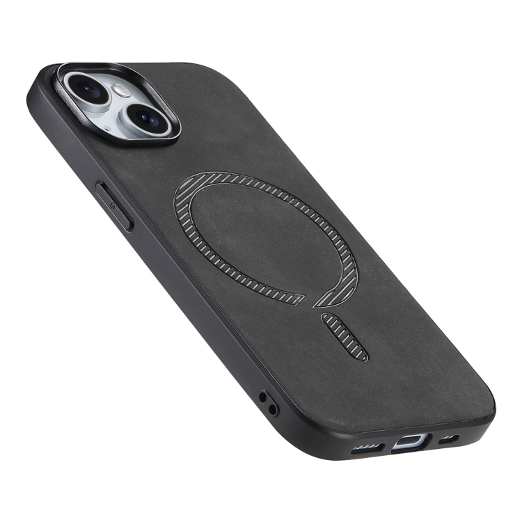 Funda para Teléfono iPhone 15 Pro Max Retro Magsafe Pu con Contraportada (Negro)