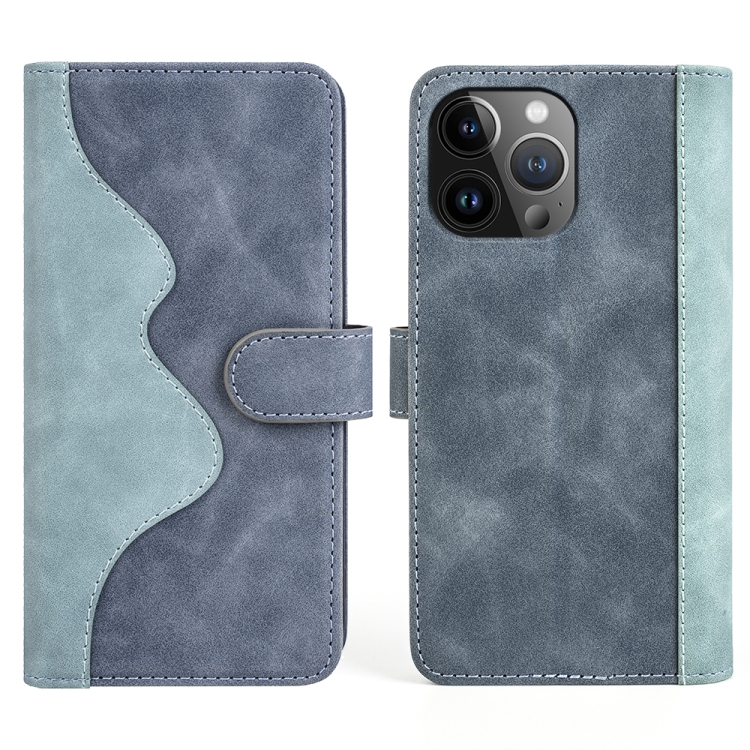 Funda para iPhone 15 Pro Max Costura Horizontal Flip Leather Phone Case (Azul)