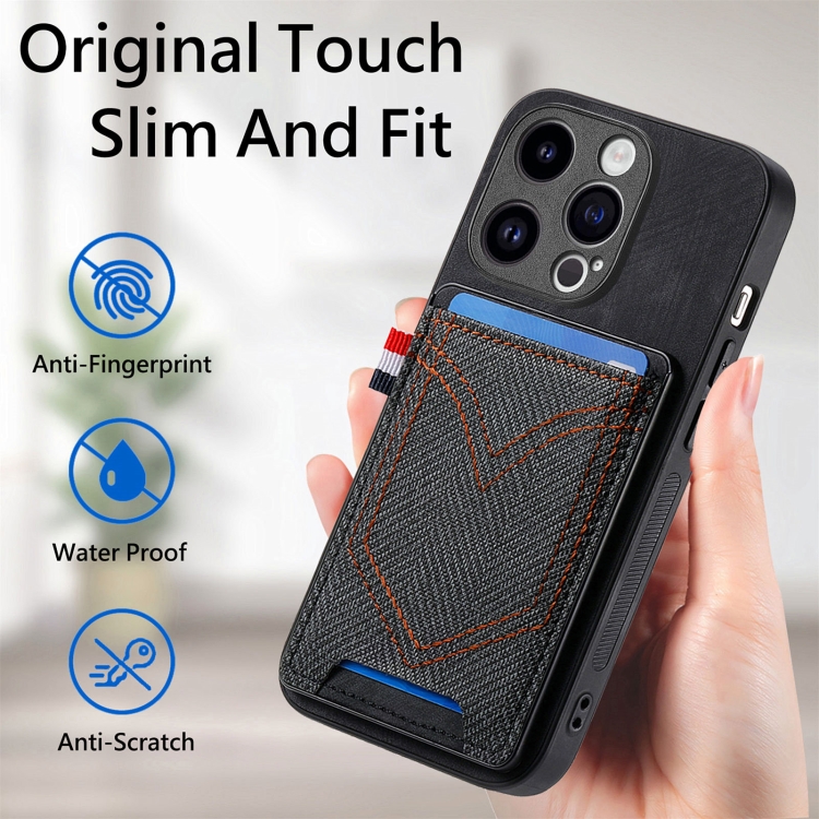 Funda para Teléfono iPhone 15 Pro Max Denim Texture Leather Skin con Ranura para Tarjeta (Negro)