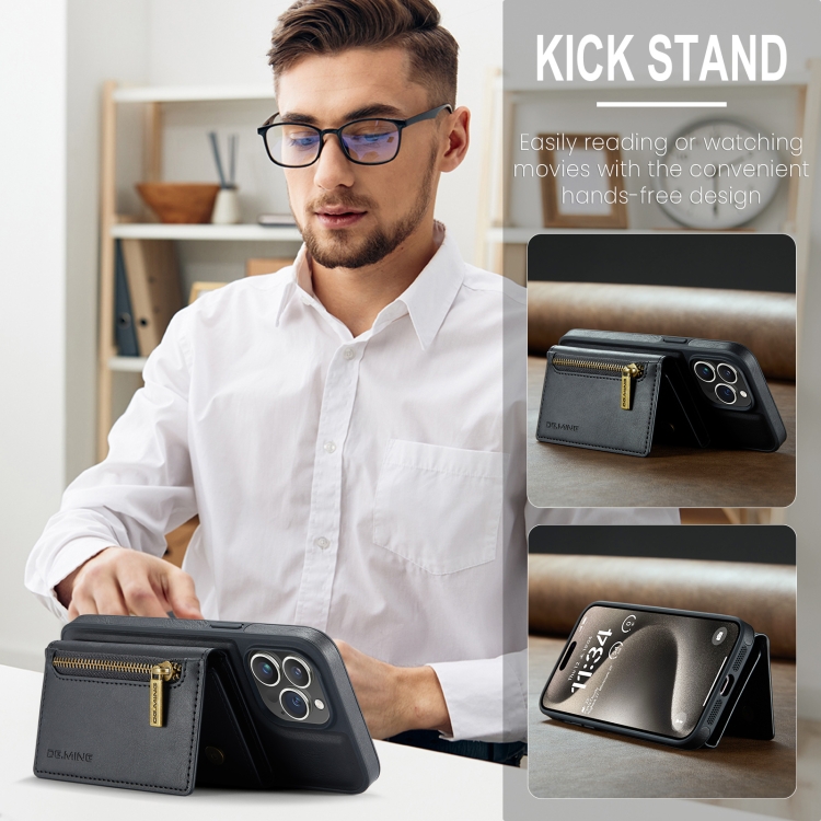 Funda para iPhone 15 Pro Max Dg.Ming M5 Series Zip RFID Cuero Desmontable Múltiples Tarjetas (Negro)