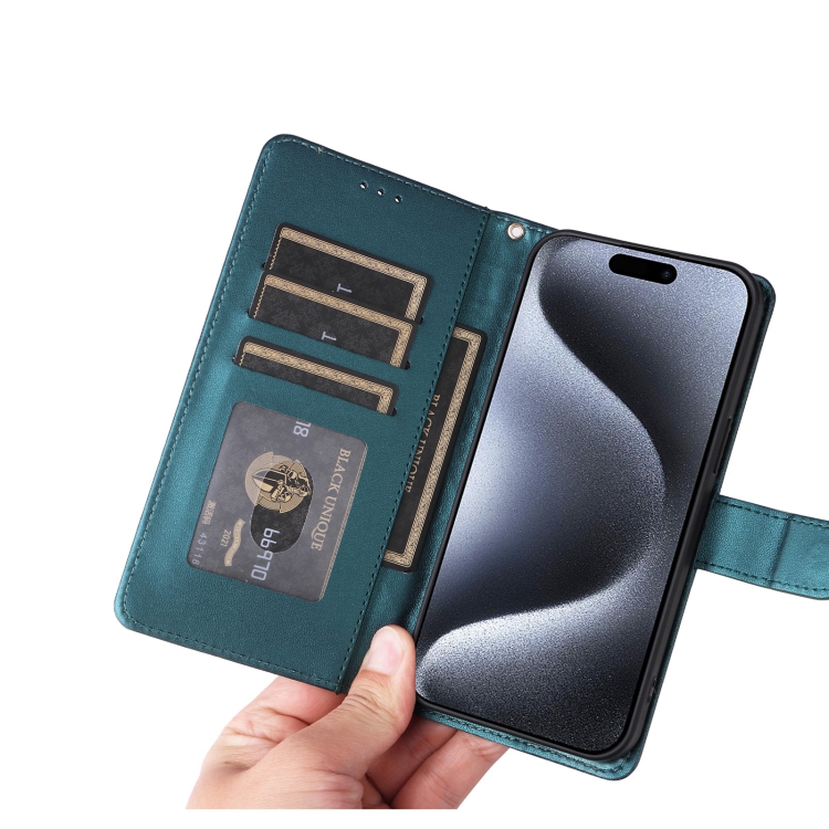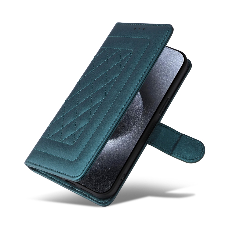 Funda para iPhone 15 Pro Max Diamond Lattice de Cuero con Tapa (Verde)