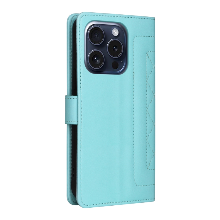 Funda para iPhone 15 Pro Max Diamond Lattice de Cuero con Tapa (Verde Menta)