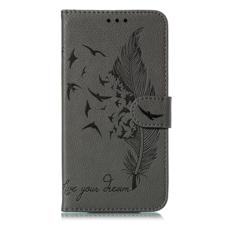 Estuche para Teléfono iPhone 15 Pro Max Cuero Textura Litchi Patrón de Plumas (Gris)