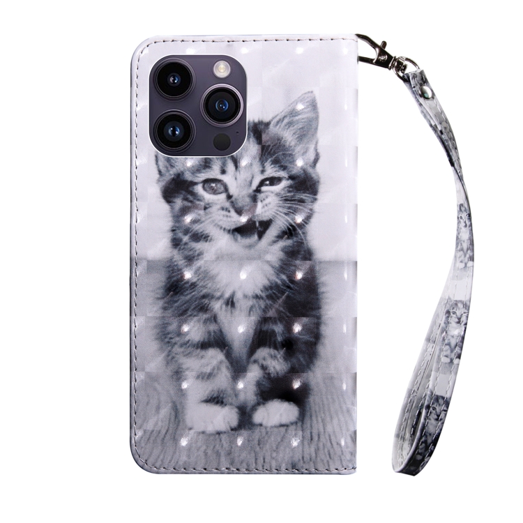 Estuche para Teléfono iPhone 15 Pro Max Cuero Pintado en 3D Gato Sonriente