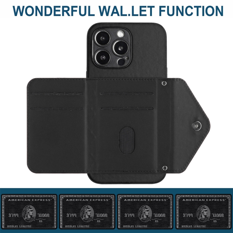 Estuche para Teléfono iPhone 15 Pro Max Rfid con Bolsa para Tarjetas Textura Rómbica y Cordón Largo (Negro)