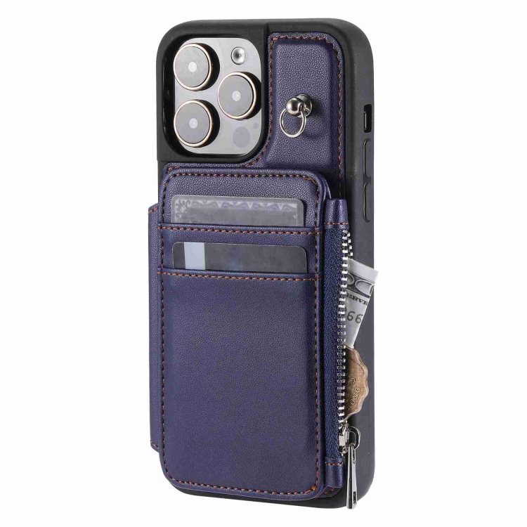 Estuche para teléfono iPhone 15 Pro Max Rfid con ranuras para tarjetas con cremallera (Azul)
