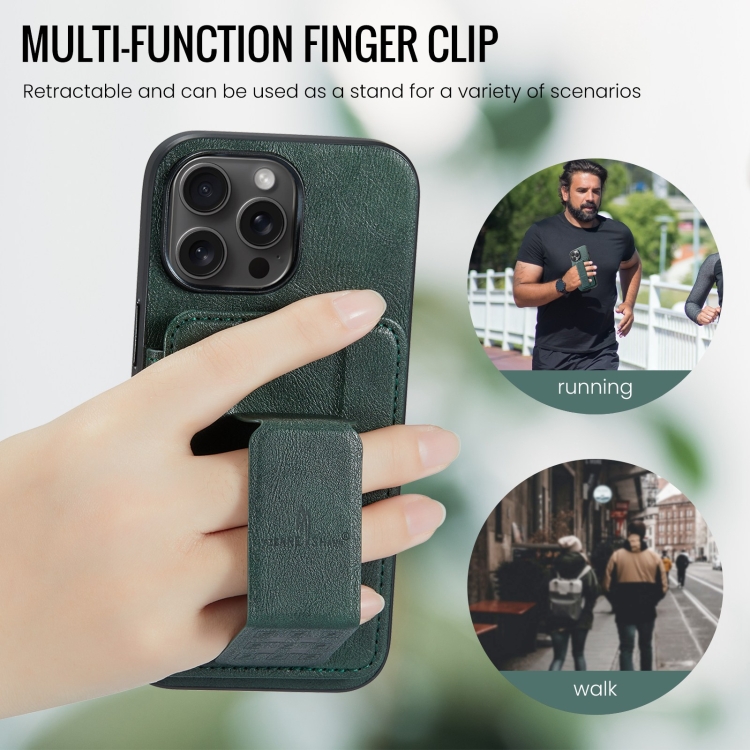 Funda para Teléfono Fierre Shann iPhone 15 Pro Max Oil Wax con Tarjetero de Cuero de Vaca (Verde)