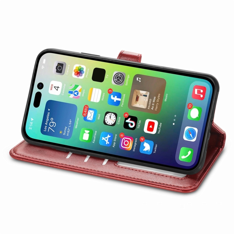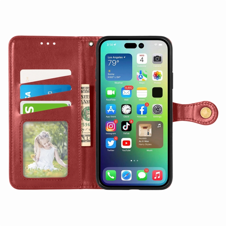 Funda de Cuero para iPhone 15 Pro Max con Hebilla Color Sólido Retro (Rojo)