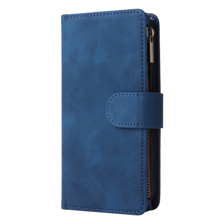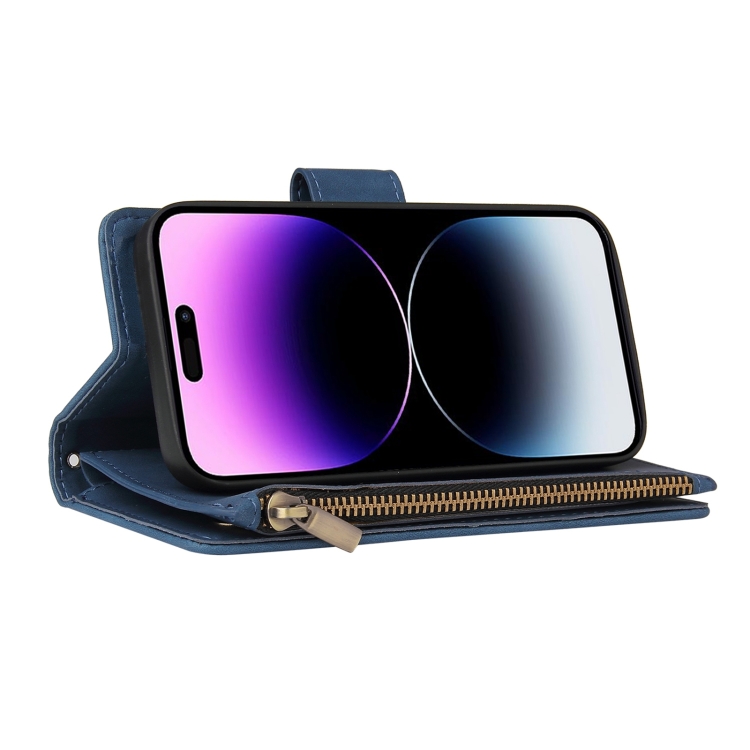 Funda para Teléfono iPhone 15 Pro Max Cuero con Billetera MultiTarjeta Multifuncional (Azul)