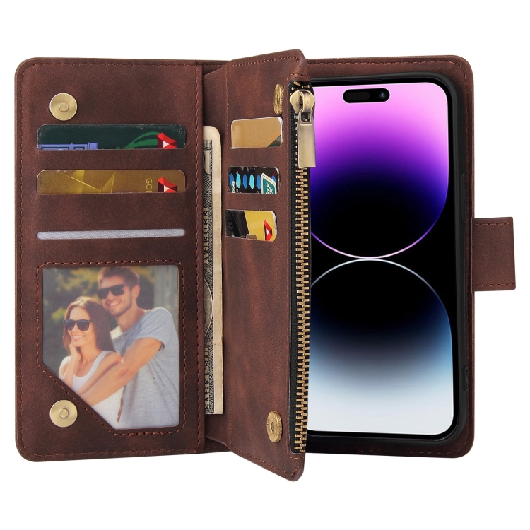 Funda para teléfono iPhone 15 Pro Max Cuero con Billetera MultiTarjeta Multifuncional (Café)