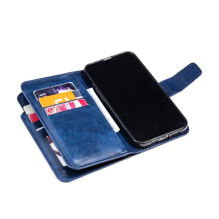 Funda para teléfono iPhone 15 Pro Max Cuero con Billetera Triple Plegable 9 Tarjetas (Azul)