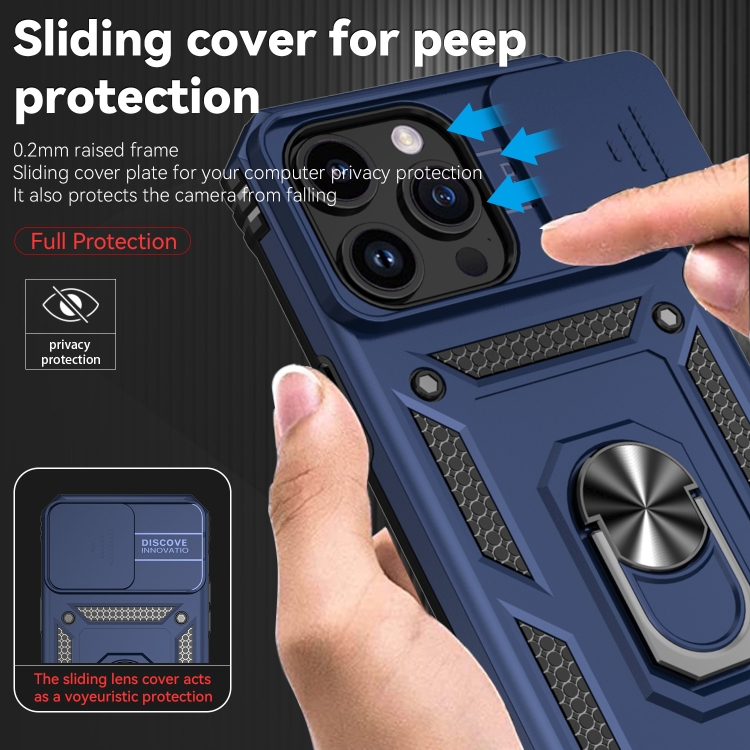 Funda de Teléfono iPhone 15 Pro Max con Soporte Deslizante Camshield (Azul)