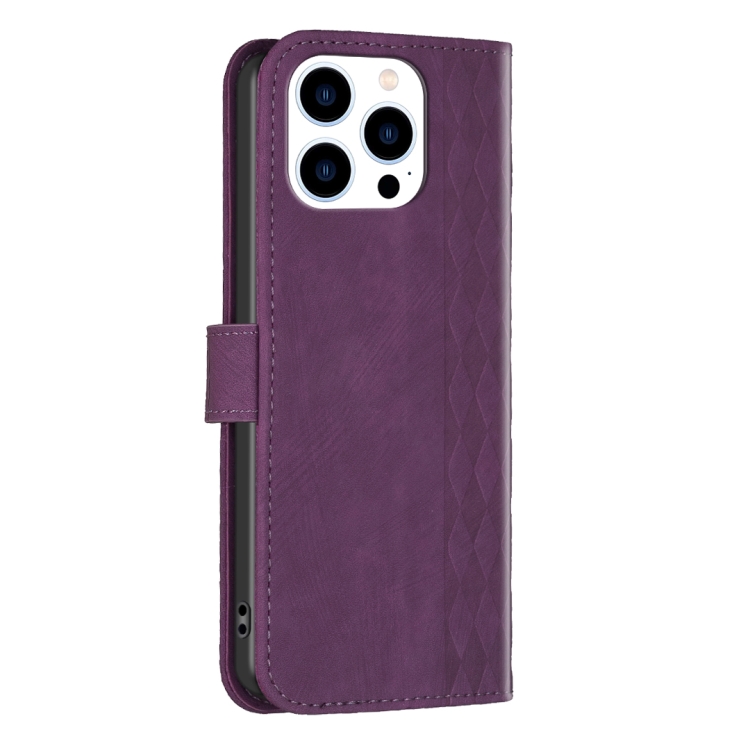 Funda de teléfono iPhone 15 Pro Max cuero en relieve a cuadros (Púrpura)