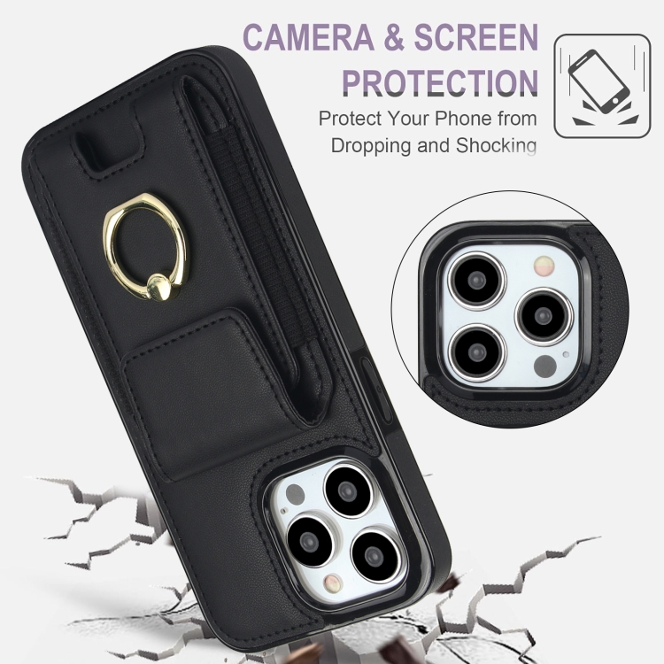 Funda para Teléfono iPhone 15 Pro Max con Soporte para Anillo y Bolsa para Tarjetas (Negro)