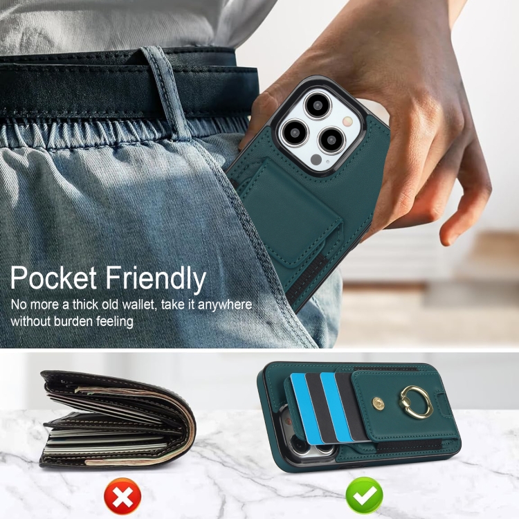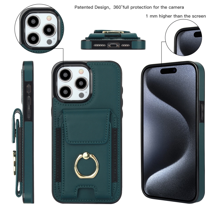 Funda Elástica para iPhone 15 Pro Max con Soporte para Anillo y Bolsa para Tarjetas (Verde Oscuro)