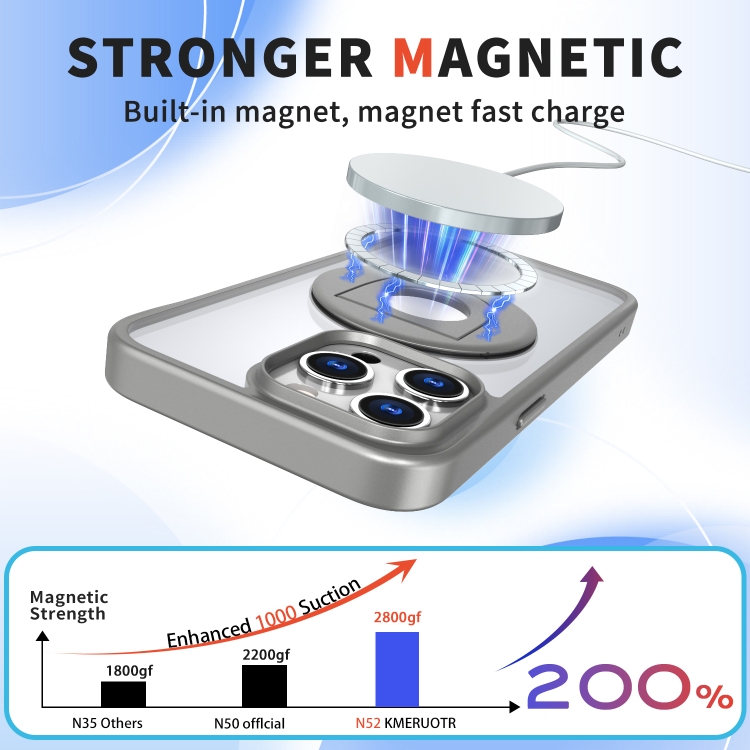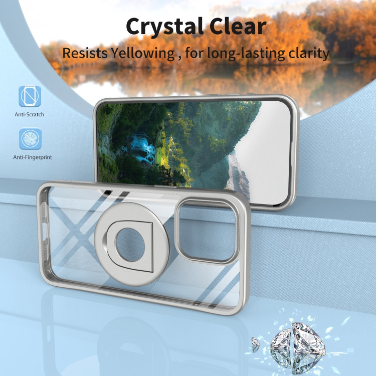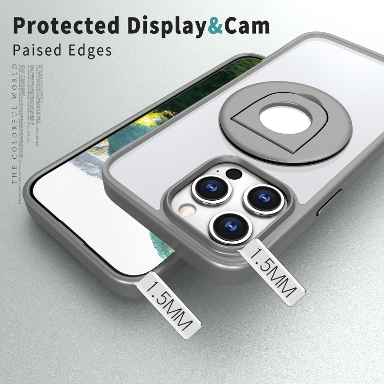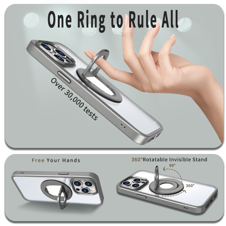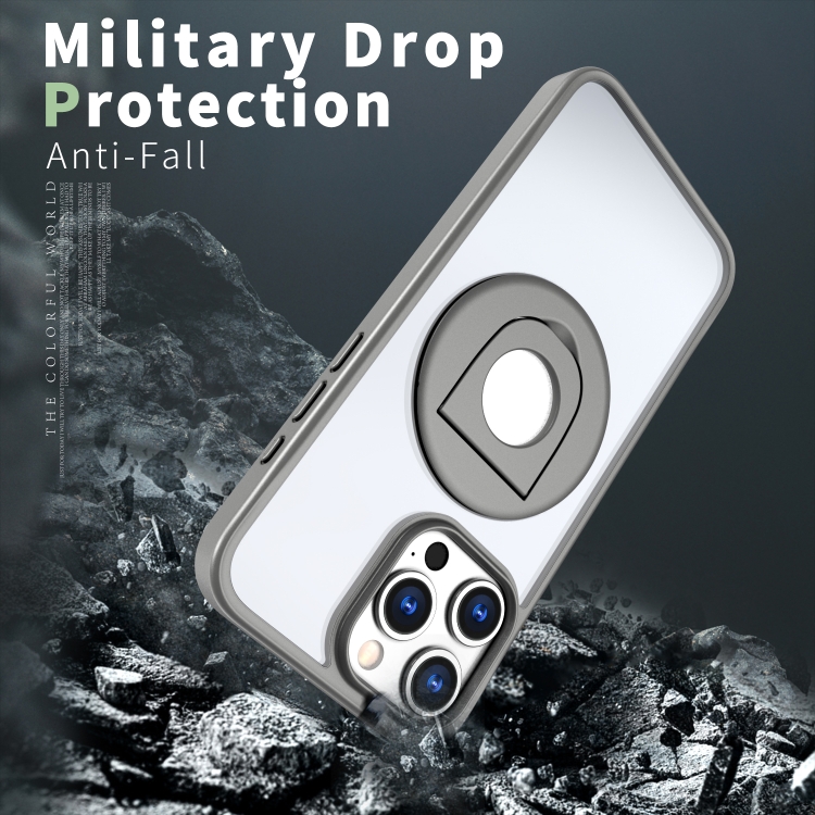 Funda para iPhone 15 Pro Max Magnética Magsafe con Soporte para Anillo en U (Transparente Gris)