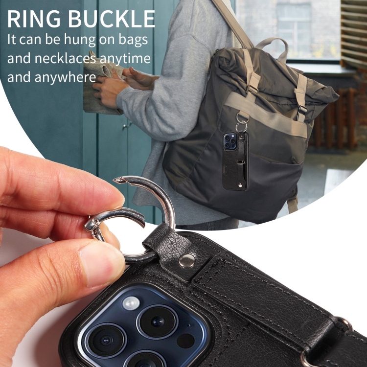 Funda para Teléfono iPhone 15 Pro Max con Anillo y Ranura para Tarjeta Textura de Pantorrilla (Negro)