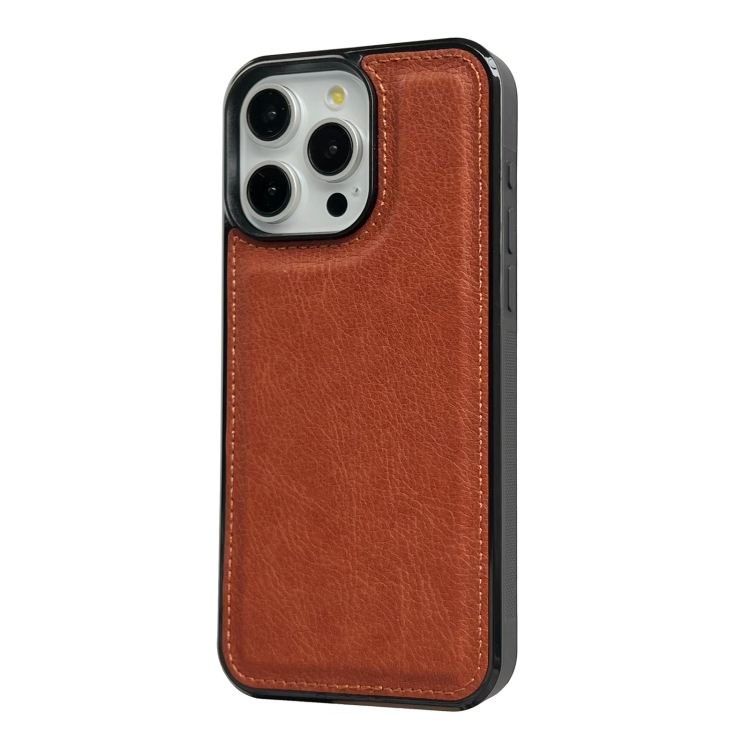 Funda para Teléfono iPhone 15 Pro Max Contraportada Textura Piel de Vaca (Marrón)