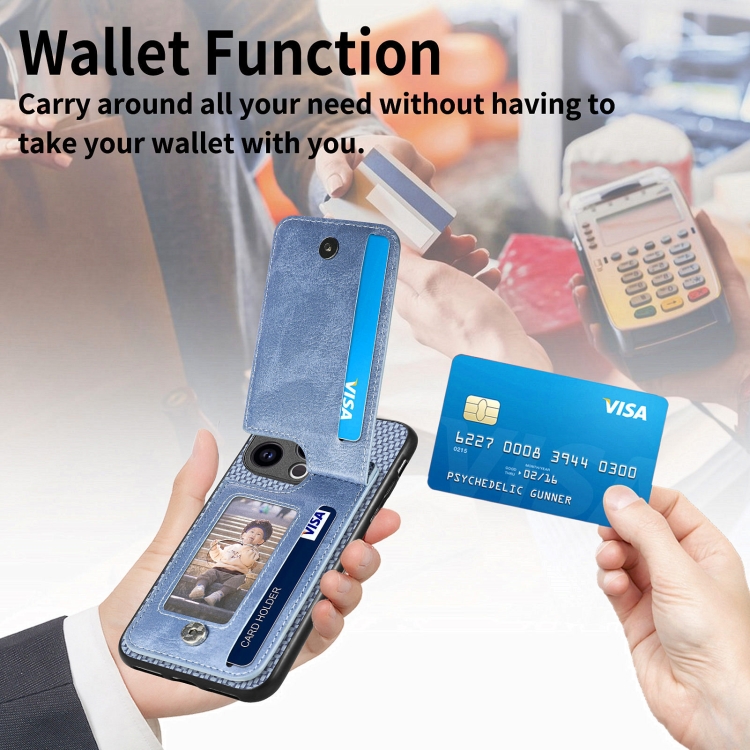 Funda para Teléfono iPhone 15 Pro Max con Cremallera y Tapa Vertical de Fibra de Carbono (Azul)