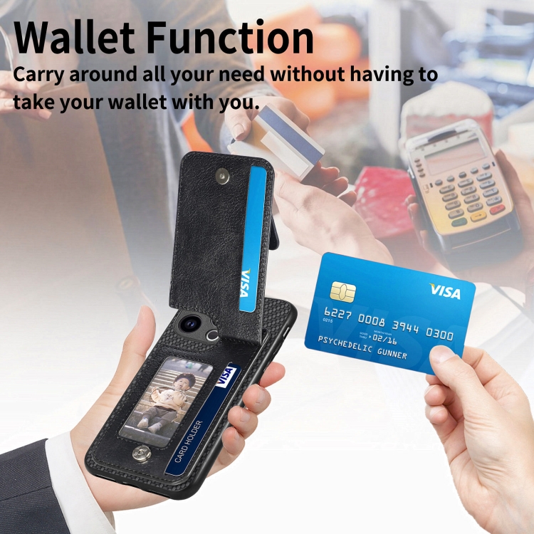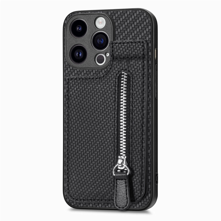 Funda para Teléfono iPhone 15 Pro Max con Cremallera y Tapa Vertical de Fibra de Carbono (Negro)