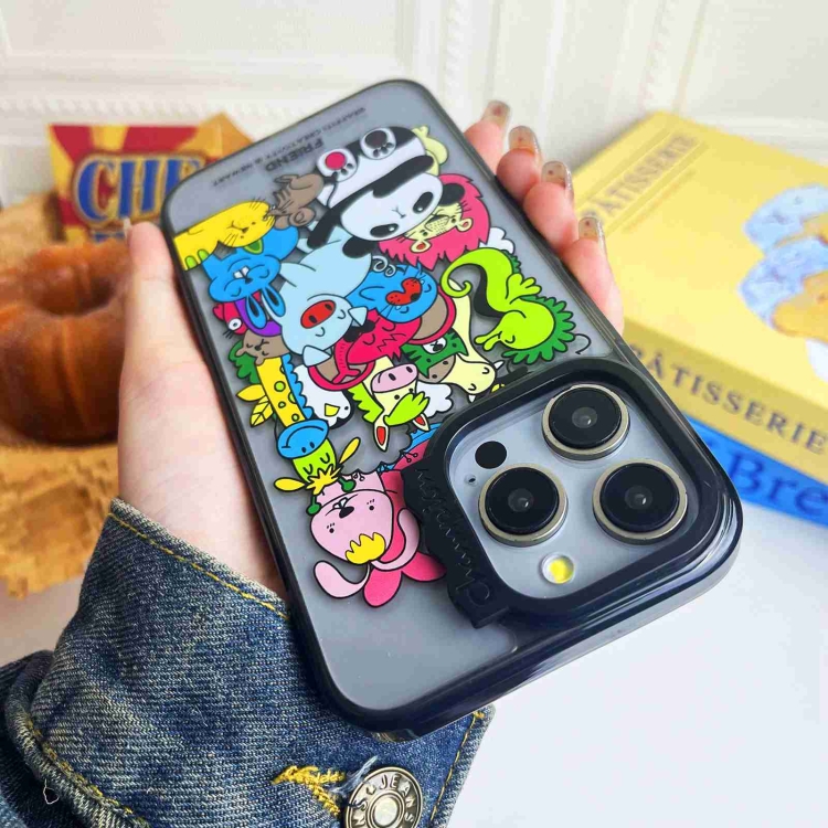 Funda para Teléfono iPhone 15 Pro Max Patrón Círculo Ondas Coloridas (Animales Negros)