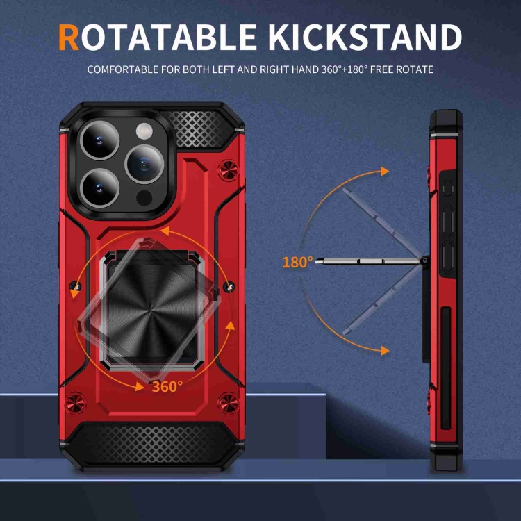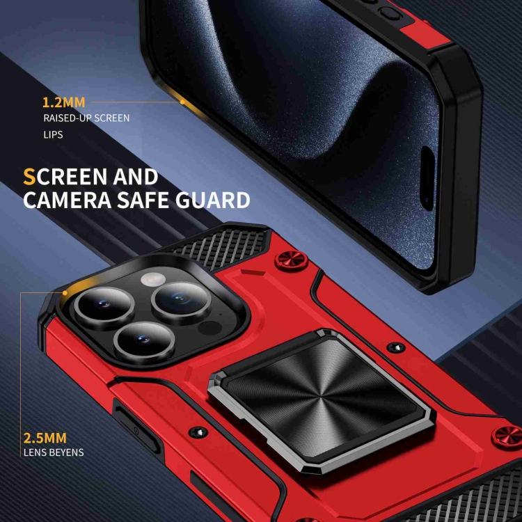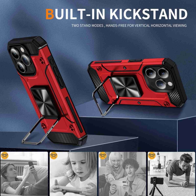 Funda para Teléfono iPhone 15 Pro Max con Soporte de Metal a Prueba de Golpes (Rojo)