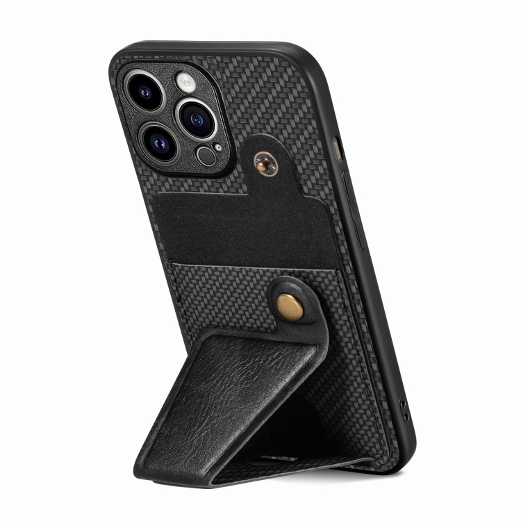Funda para Teléfono iPhone 15 Pro Max con Soporte en Forma de K y Tarjeta con Tapa de Fibra de Carbono (Negro)