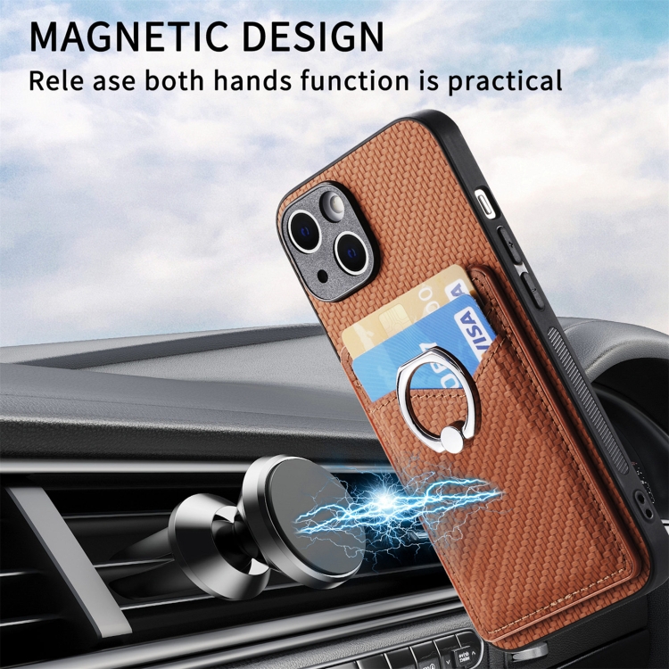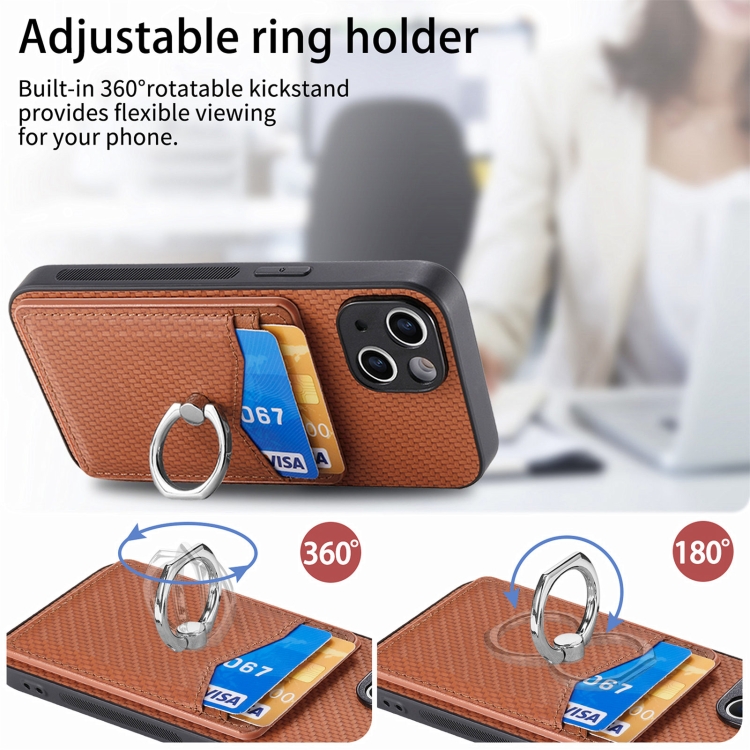 Funda para Teléfono iPhone 15 Pro Max con Soporte para Anillo y Billetera con Tarjeta Fibra de Carbono (Marrón)