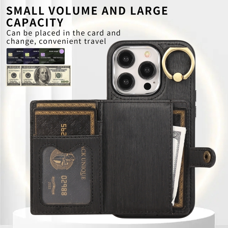 Funda para Teléfono iPhone 15 Pro Max con Soporte para Anillo y Billetera con Textura Cepillada (Negro)