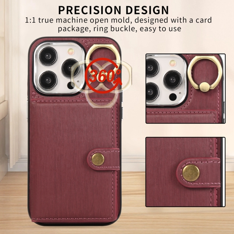 Funda para Teléfono iPhone 15 Pro Max Soporte Anillo Billetera Textura Cepillada (Rojo Vino)