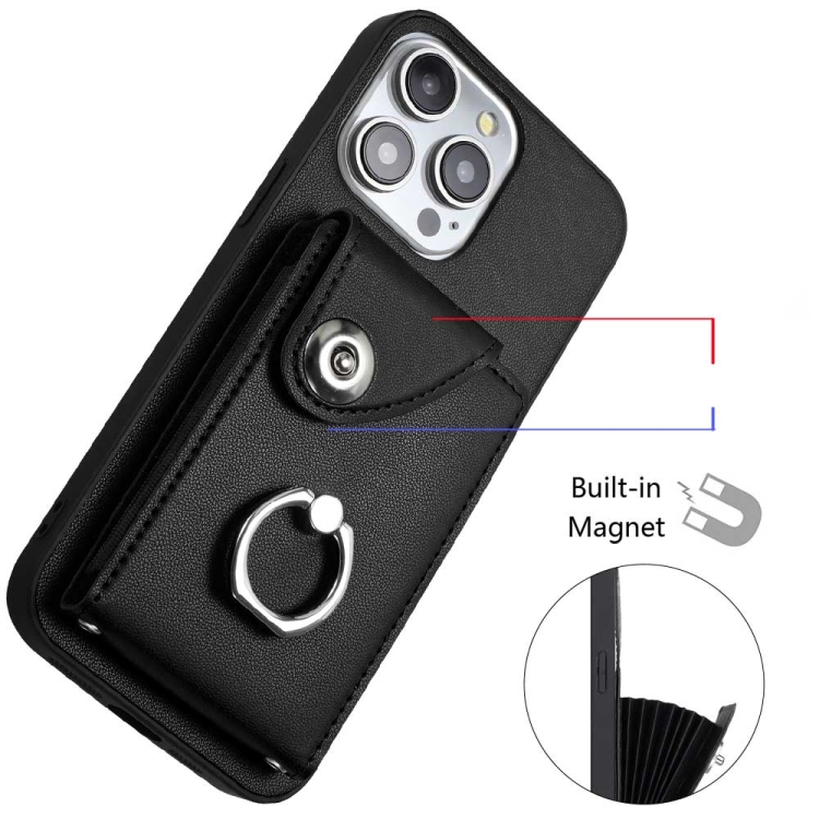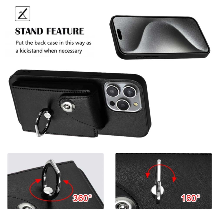 Funda para Teléfono iPhone 15 Pro Max con Soporte para Anillo y Bolsa para Tarjeta de Órgano (Negro)