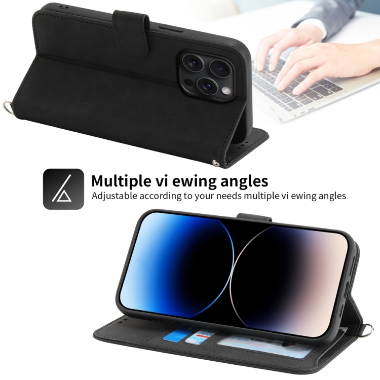 Funda para Teléfono iPhone 15 Pro Max Cuero con Billetera en Relieve y Flores (Negro)