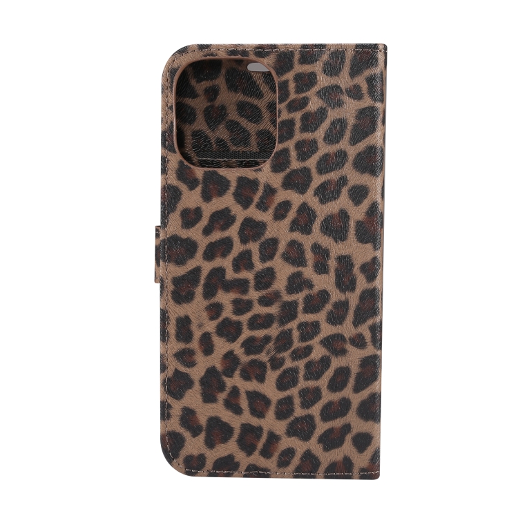Funda para teléfono iPhone 15 Pro Max cuero con tapa horizontal patrón leopardo (Marrón)