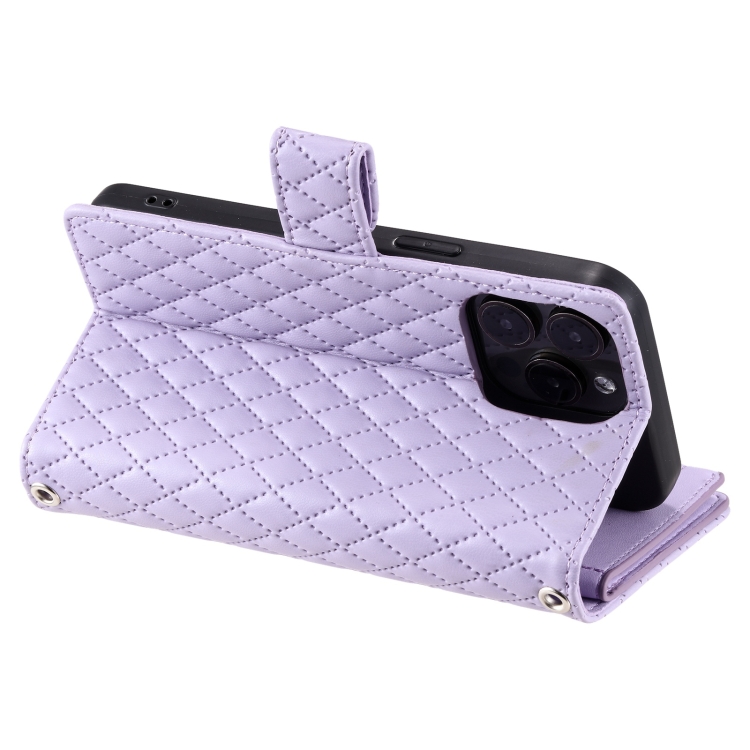 Funda para Teléfono iPhone 15 Pro Max Glitter Lattice Zipper Wallet Cuero (Púrpura)