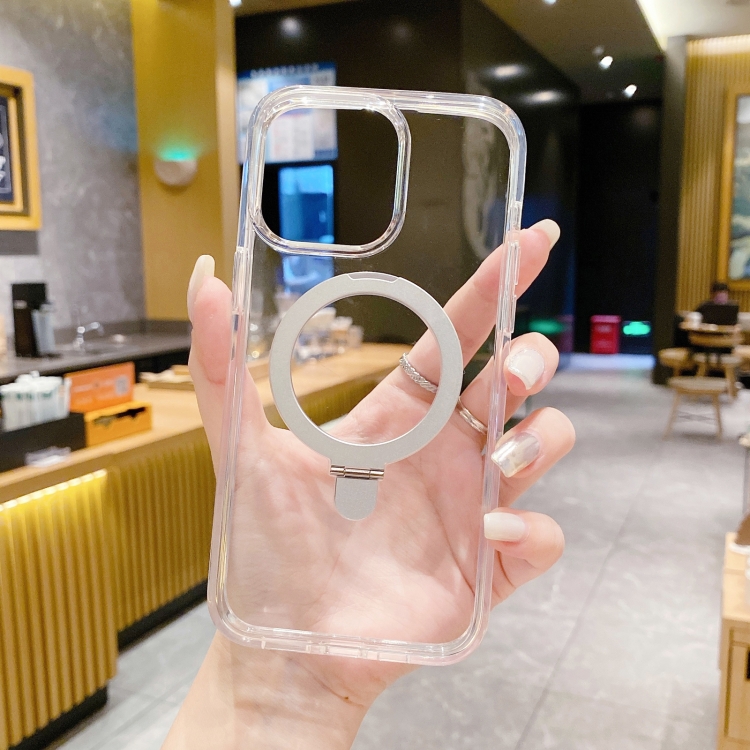 Estuche para iPhone 15 Pro Max Glitter Magsafe Magnético con Soporte (Blanco Transparente)