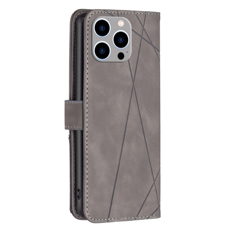 Funda para teléfono iPhone 15 Pro Max Hebilla Magnética Rombo Textura Cuero (Gris)