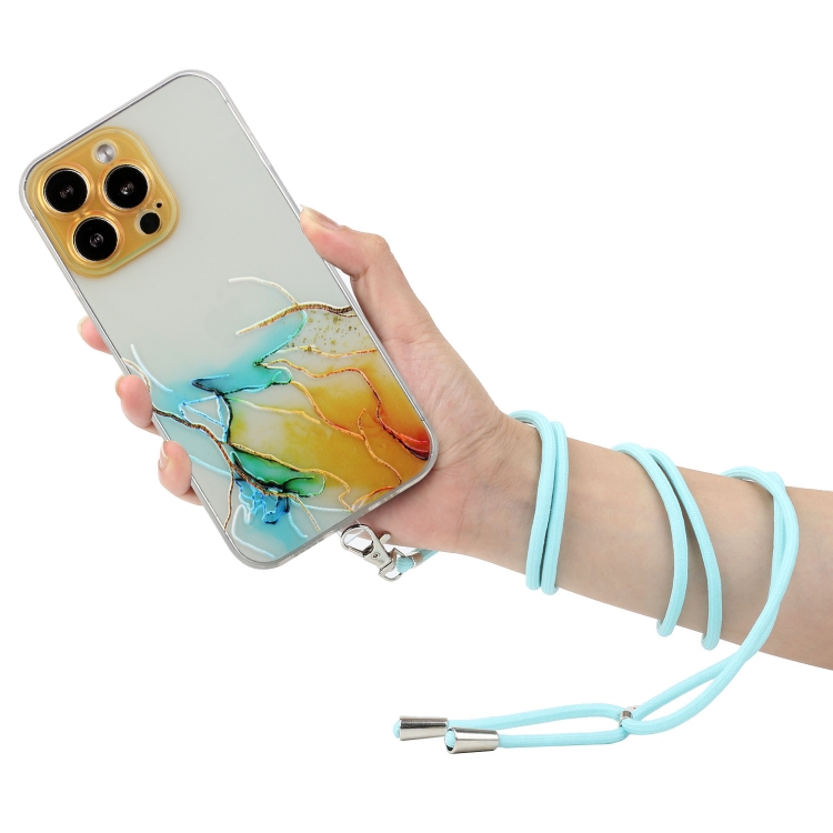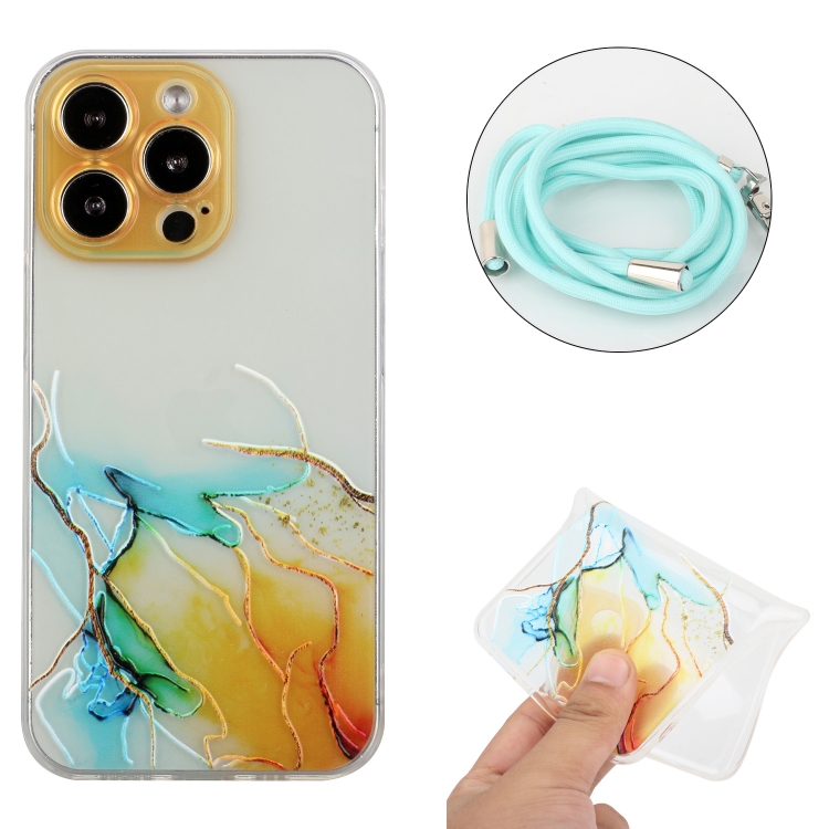 Estuche TPU para iPhone 15 Pro Max Hollow Marble Pattern a Prueba de Golpes con Cuerda (Amarillo)