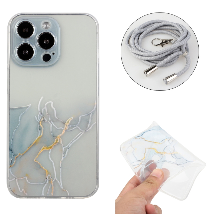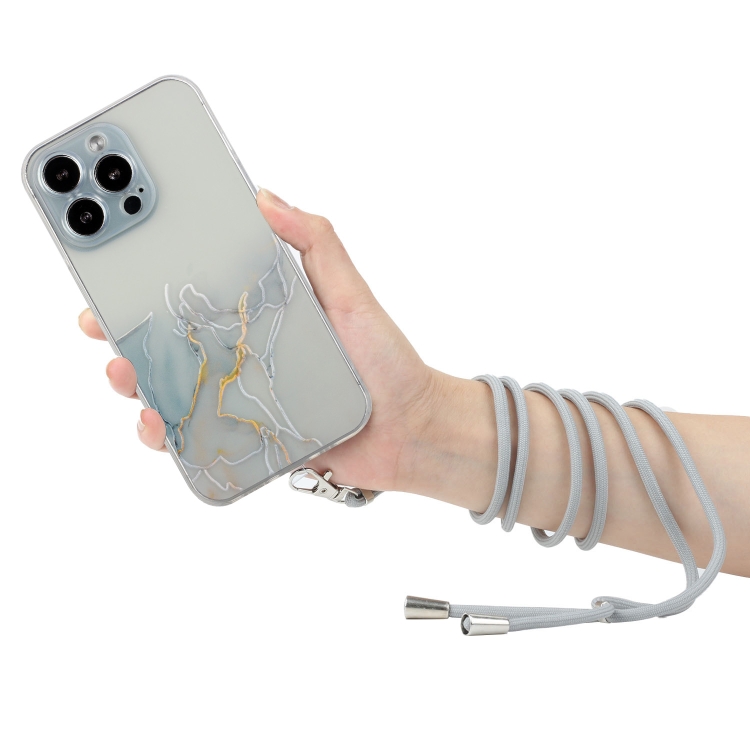 Estuche para Teléfono iPhone 15 Pro Max TPU Hollow Marble Pattern a Prueba de Golpes con Cuerda (Gris)