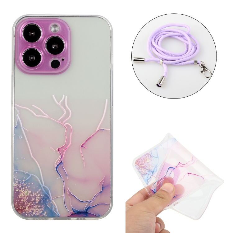 Estuche para Teléfono iPhone 15 Pro Max TPU a Prueba de Golpes con Cuerda (Rosa)
