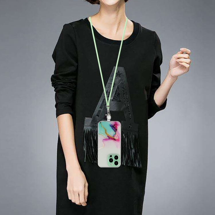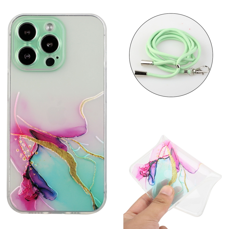 Estuche para Teléfono iPhone 15 Pro Max TPU Hollow Marble Pattern a Prueba de Golpes con Cuerda (Verde)