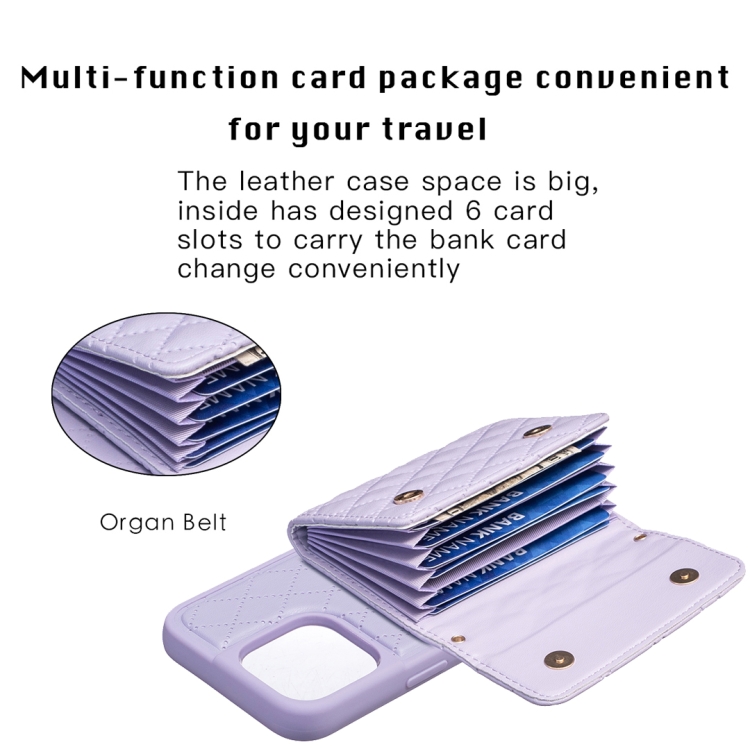 Funda para iPhone 15 Pro Max Horizontal Wallet Rhombic Leather Phone Case (Púrpura)